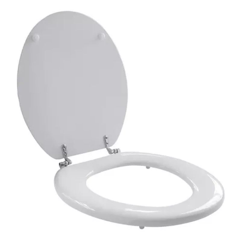 Asiento para inodoro Tipo Florencia blanco con herrajes metálicos.
