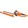 Silencioso cortacercos eléctrico con motor potente de 500 vatios y vibraciones reducidas. Corte potente, diseño ergonómico, empuñadura giratoria en 5 posiciones para un corte más cómodo y flexible.