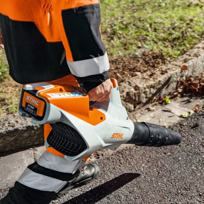 El soplador a batería STIHL BGA 86 es un soplador muy potente para uso profesional con un gran rendimiento de soplado y un diseño liviano. Con un peso de sólo 2,8 kg (sin incluir la batería), el soplador de hojas es ligero y muy silencioso, por lo que puede utilizarlo incluso en entornos sensibles al ruido, p. jardines de hospitales, guarderías y zonas residenciales, para eliminar hojas, recortes de césped y suciedad. El STIHL BGA 86 puede funcionar con baterías STIHL del Sistema AP. Gracias al mango multifunción con una sola mano, tendrás todos los controles en una mano y podrás manejar el dispositivo de forma fiable tanto si eres diestro como zurdo. El control de velocidad infinitamente variable se puede utilizar para ajustar con precisión la fuerza del soplado para adaptarse a la superficie que está limpiando. El soplador de hojas BGA 86 está equipado de serie con una boquilla redonda. Puedes ajustar la longitud del tubo del soplador a uno de los tres niveles para adaptarlo a tu altura, para que puedas trabajar a la distancia adecuada del suelo.