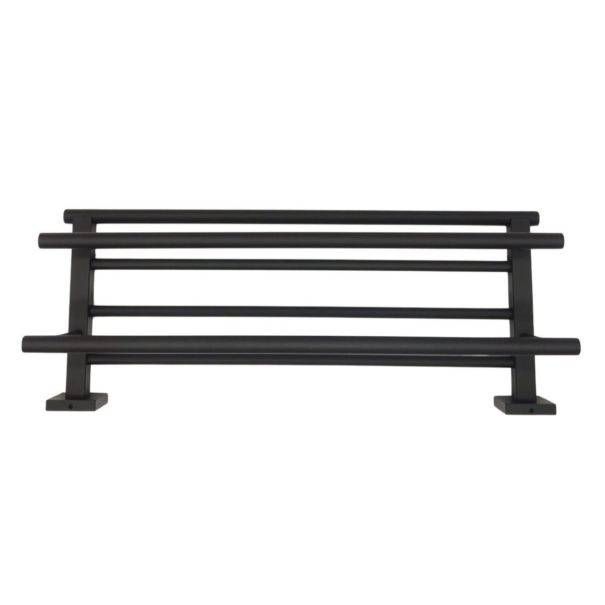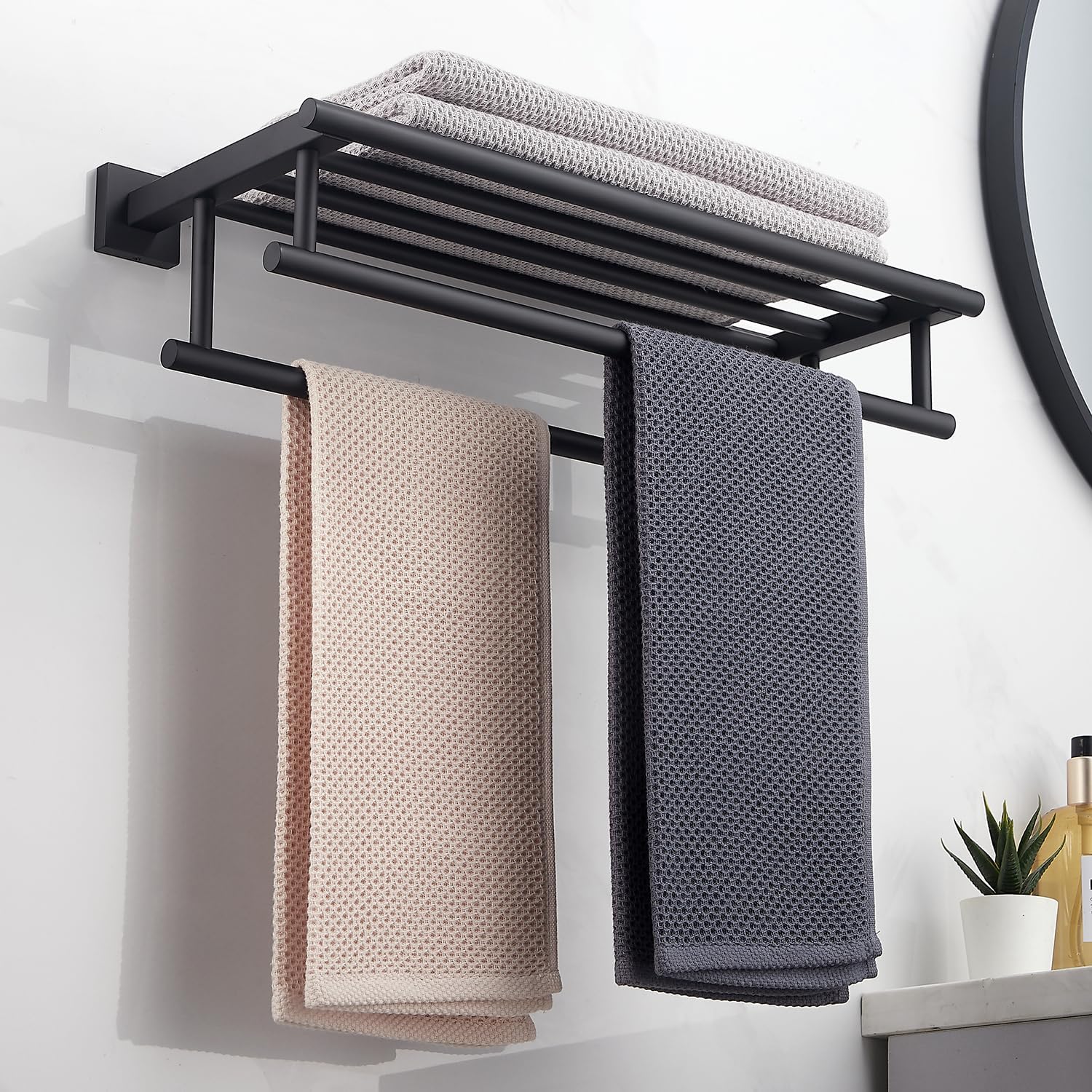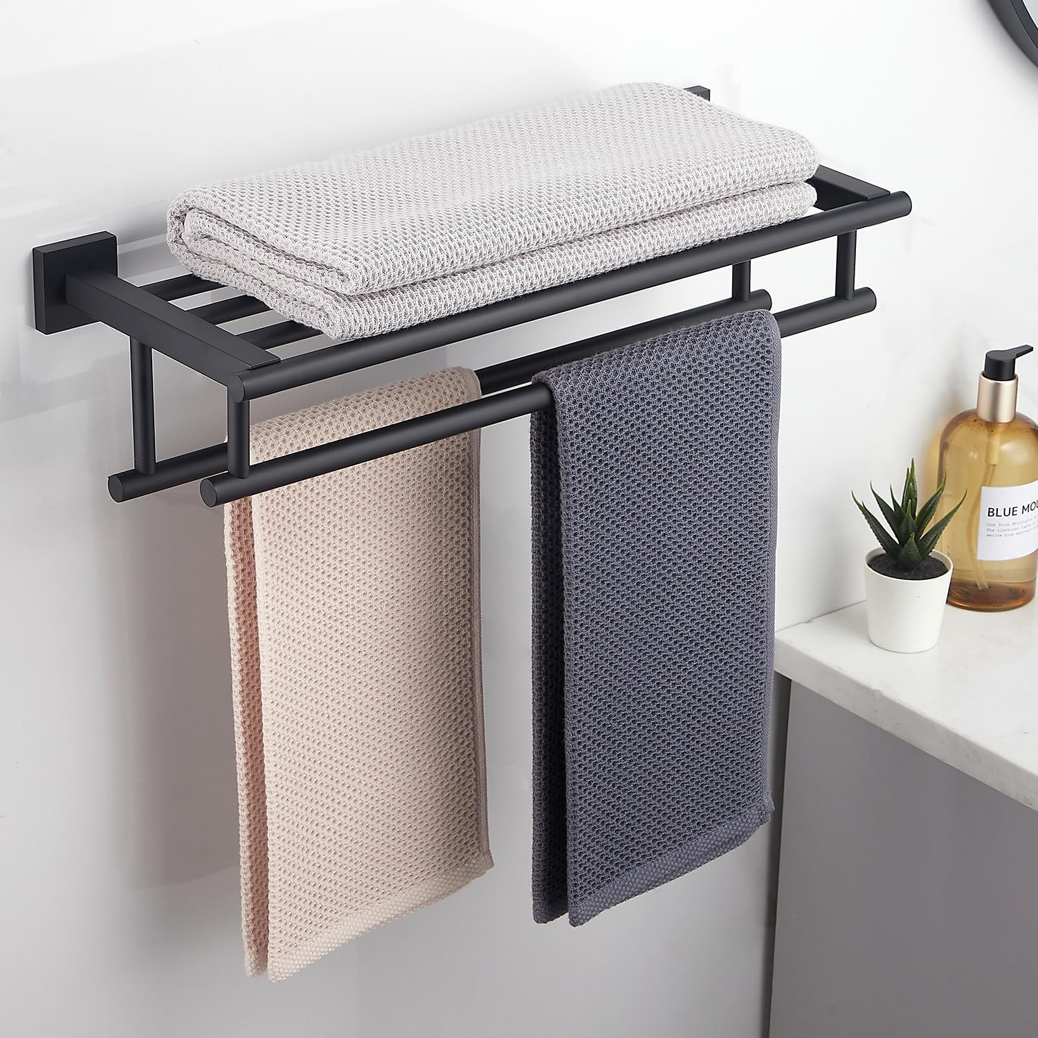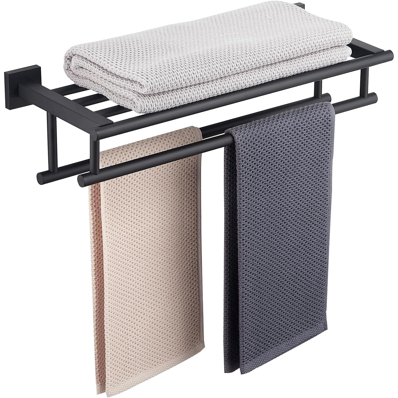 Toallero de baño con dos barras para toallas y estante, para colgar en la pared, acero inoxidable Black Edition.